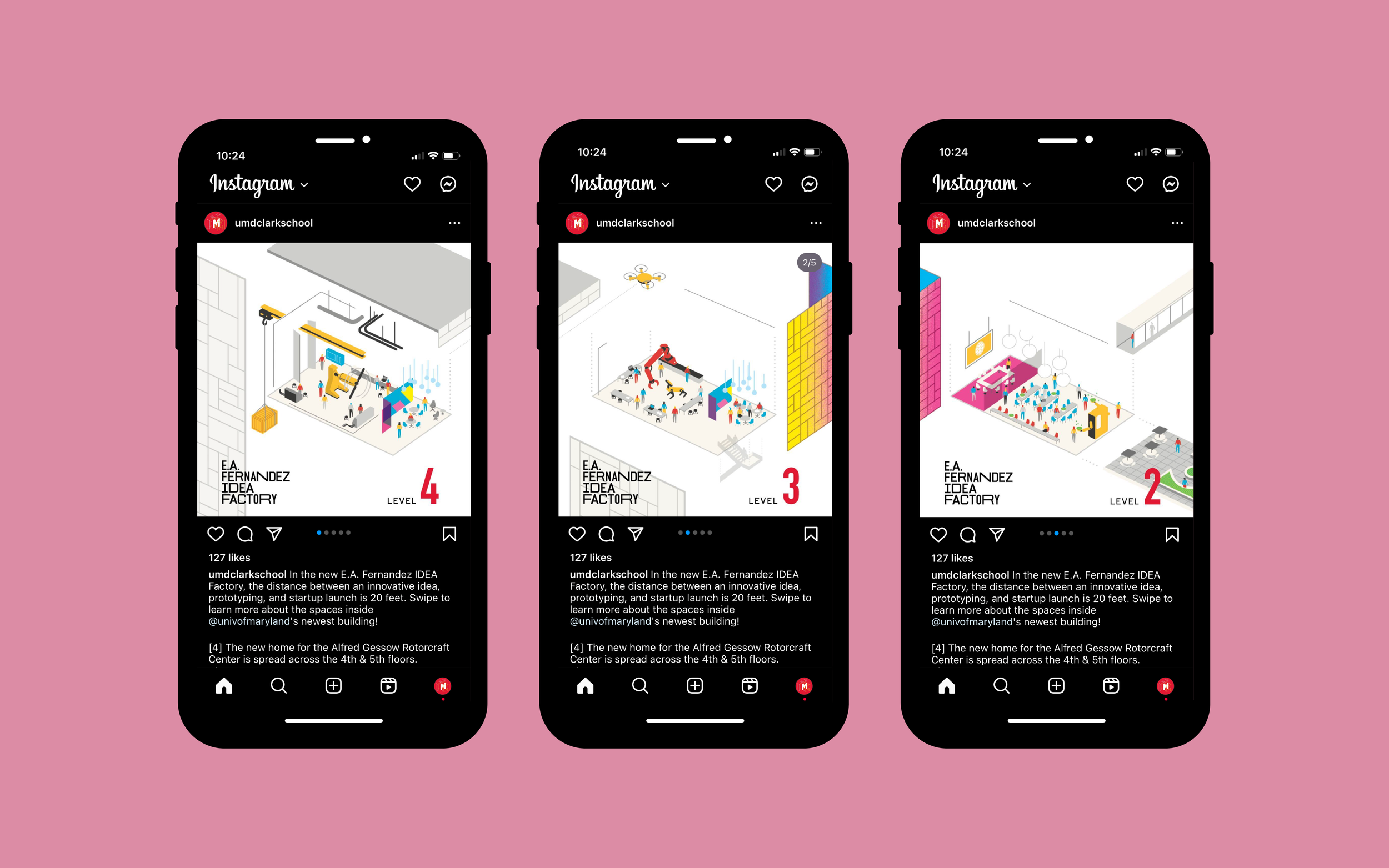 The striking new E.A. Fernandez IDEA Factory is a dynamic facility where University of Maryland students and researchers can push the limits of 21st-century innovation and entrepreneurship. Made from laminated glass treated with dichroic film, the building’s windows create radiant color shifts through transmitted and reflected light.